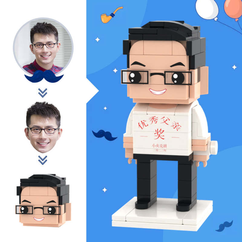 創意父親節禮物定制頭部積木公仔優秀父親積木公仔小顆粒積木玩具兒子送父親的禮物