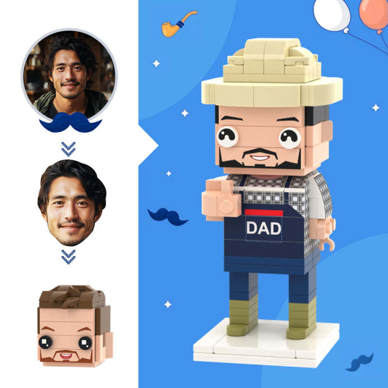 父親節禮物定制頭部積木公辛勞的爸爸積木公仔仔小顆粒積木玩具送爸爸的趣味禮物
