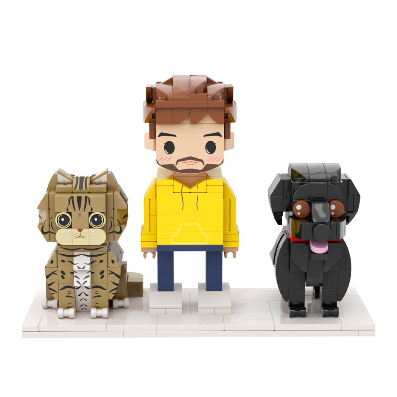 個性化單人全身人物與狗和貓寵物家庭禮物